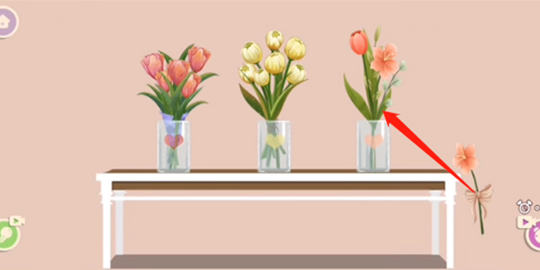 This is the first level, and it's also the easiest to pass. Players should first place the red flower with leaves on the left and the three flowers together on the right into the vase on the left, then put the yellow flower on the left and the several yellow flowers on the right into the middle vase, and finally place the remaining light pink flowers on the right into the vase on the right.