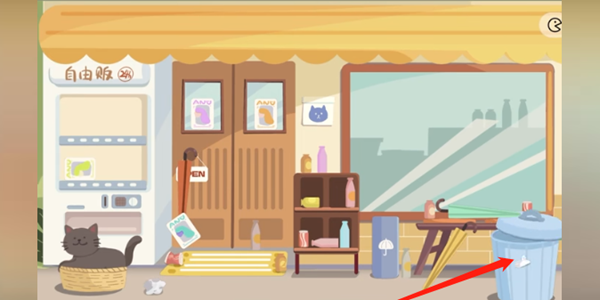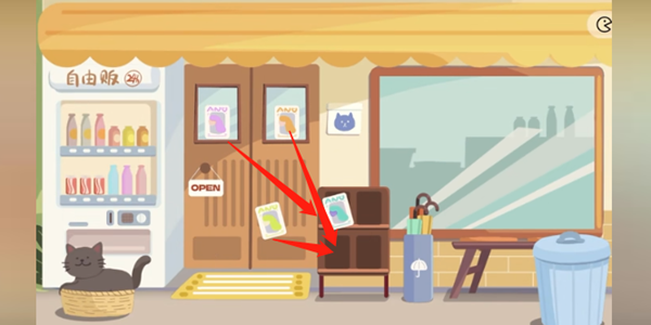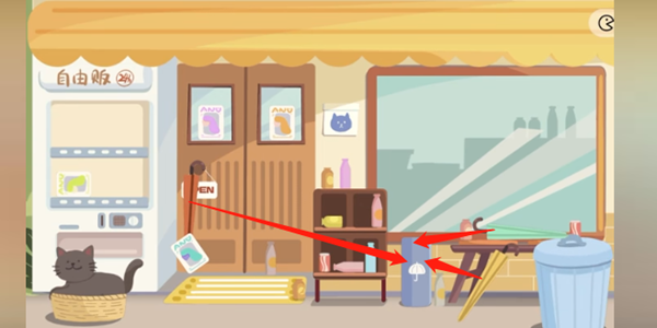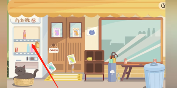 3)把饮料都放在贩卖机里,有一瓶可乐在小猫的后面,挪开小猫就可以看见了
