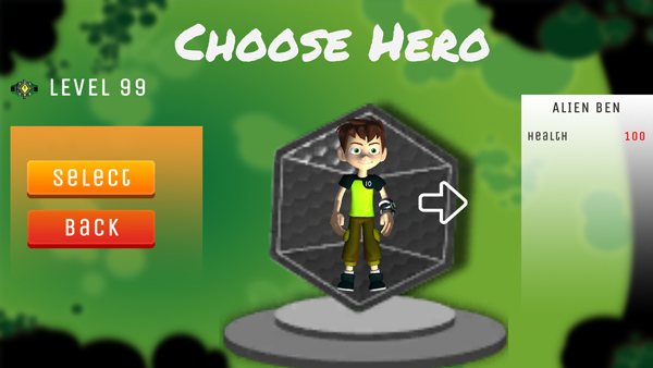 2、挑选游戏角色,点击箭头可以切换角色,目前有多个角色可供玩家选择,右边会展示角色的生命值;