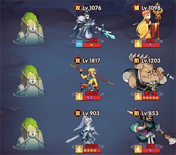 3、游戏提供供9个阵位。玩家可以很快解锁前六个,而之后的阵位解锁则需要玩家闯过一定数量的关卡才能解锁。