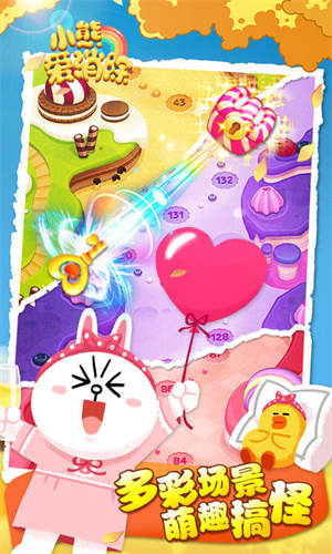 LINE正版授权,游戏内满是呆萌可爱的布朗熊和他的小伙伴们,俏皮的可妮兔、温暖的莎莉还有更多LINE角色聚集在《小熊爱消除》中,喜欢他们就来游戏中与他们见面吧!