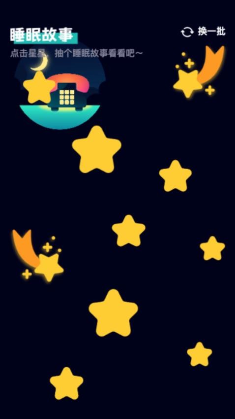 用户可选择到睡眠故事来进行查看,通过点击星星来抽取睡眠故事查看。