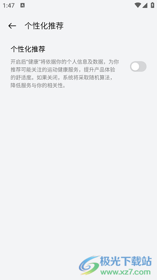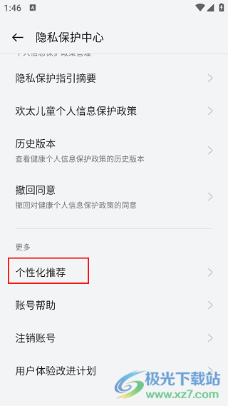 接着会进入一个新的界面,在这里需要找到并点击“个性化推荐”。