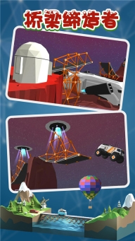 你有没有梦想过成为一名建筑工程师,创造出一座卓越的建筑物?你有能力构建一座真正的安全桥梁吗?桥梁创造者手游是一款非常受欢迎的模拟建设解谜游戏,这款游戏运用物理算法可以计算出最优化的建桥方案以确保车辆能够通行,它拥有精美的卡通风格游戏画面,并提供了各种大桥供你建造,体验游戏中的更多乐趣。在游戏中,建筑材料有多种类型,玩家需要尽可能地利用所需的材料。然而,由于预算的限制,你的想象力会受到一定的约束,因此你需要密切关注你的金币余额,并在完成桥梁建造后仔细检查其稳定性和安全性。
