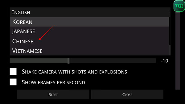 可以观察到当前显示的是English,滑动屏幕找到Chinese选项并进行选择。