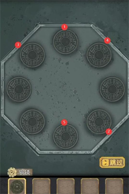 7、进入后在地上的空槽内装上铜镜,按照下图的样子摆放得到石桥。