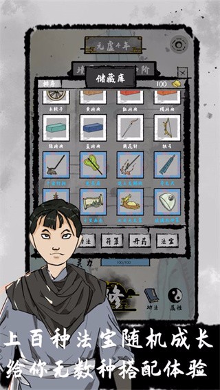 构建了一个以修仙为主题的世界观,作品内包含有超过一百种随机发生的独特事件,并融入了符箓、法宝以及丹药等元素,同时还提供了数百种先天觉醒与后天突破供玩家挑选。