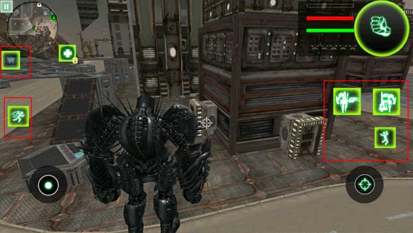 在左侧有商店、加速和治疗的按钮,右侧则提供了机械飞龙、汽车和跺脚这三个功能选项。