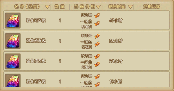 拍卖场可以获得其他弹友寄卖的强化石,不同强化石的拍卖价格不同,弹友们在购买时注意购买数量和价格哦~