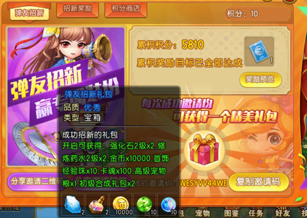 每周都可以在弹友招新中领取一个“弹友招新礼包”,打开后可获得强化石。