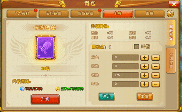 在游戏里,你可以用卡魂(可以在秘境商店兑换,或者通过邀请新玩家加入弹弹世界得到的礼包中获取)以及一定量的金币来升级图册,这样就能获得属性点了。你可以根据自己的需求,把属性点分配到你需要的属性上,再次提升自己。