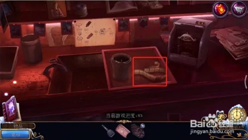 拿到热水后,用热水融化咖啡馆门上的冰,然后进入咖啡馆。进入咖啡馆后,先完成找东西的小游戏。完成小游戏后,用瓷砖移开沙发。移开后进入地下室。进入地下室后,先拿到备忘单,胶卷,背包和定影剂。然后点击下图箭头指向的地方。