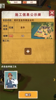 6、之后会出现施工信息公示牌,我们选择好施工队后点击确定;