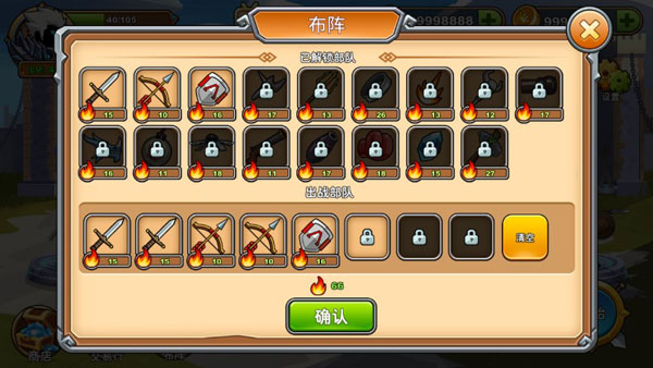 在游戏里,布阵是一项独具特色的功能,它包含了各种各样的兵种。每当玩家顺利通关后,相应的兵种就会被解锁。这些兵种的种类之多会让你大吃一惊。你可以根据自己的喜好自由选择要出战的部队,并与英雄一起攻占敌人的城池。