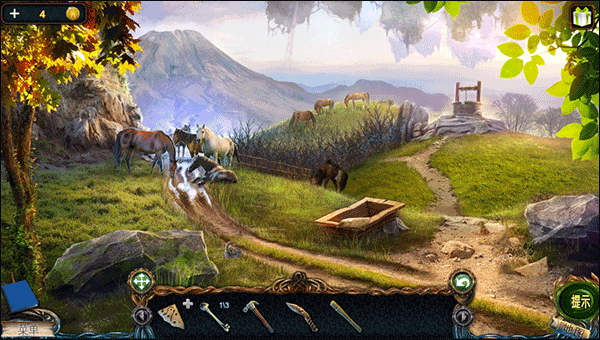 8、拿出钉子、木板和锤子,点击空缺处,桥就修好了;