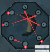 5、观察箭头提示,可以推断出石灯把手的正确操作顺序是:上、下、左、左、右、右、右、左。