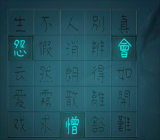 点击墙上的文字的顺序是:生活就像戏剧,真伪难以分辨,烟雾散去,突然明白。
