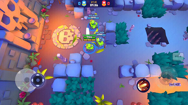 油桶:显而易见,双方都是机器人。初期阶段,你可以随意挂机,等待油桶数量增多后再去收割,或者捡队友掉落的油桶,接着在后方继续挂机捡漏即可。你会发现,当你拥有10个油桶时,在倒计时20秒期间,对方的机器人根本不会冲过来,反而在中间慢悠悠地行走,这真是机器人的明显特征!