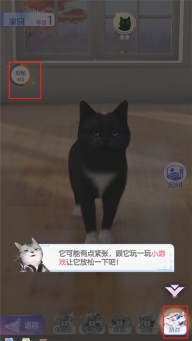8、初入新家,猫咪心情值较低,我们点击游戏,让它放松一下;