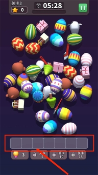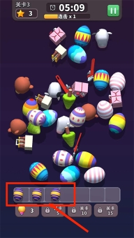 3、将【三个相同的物品】放置在下方方块中即可消除,