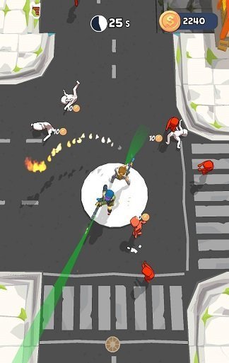 在末世夫妻控制两个角色在屏幕中间旋转,夫妻两个人的射击距离、威力都不同,射程远的威力不足,威力足够的射击距离不足,所以玩家需要根据两个人的特性策略性的射击僵尸。