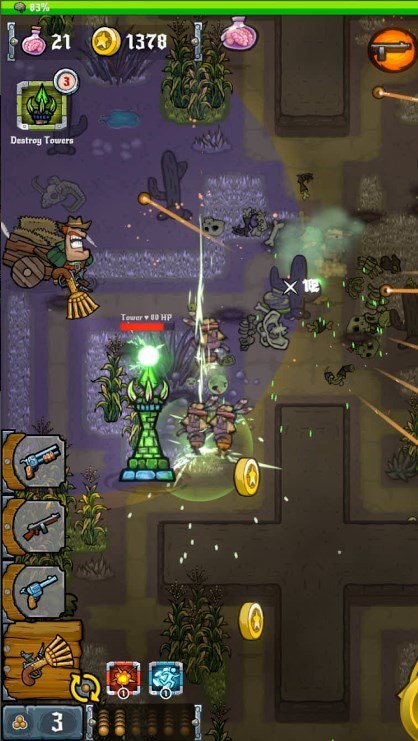在狂野西部僵尸游戏收集各类武器,并善加利用它们来对抗僵尸群;