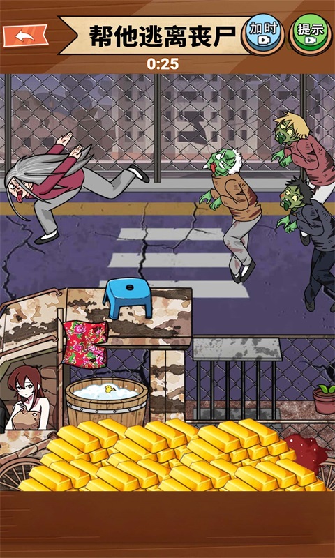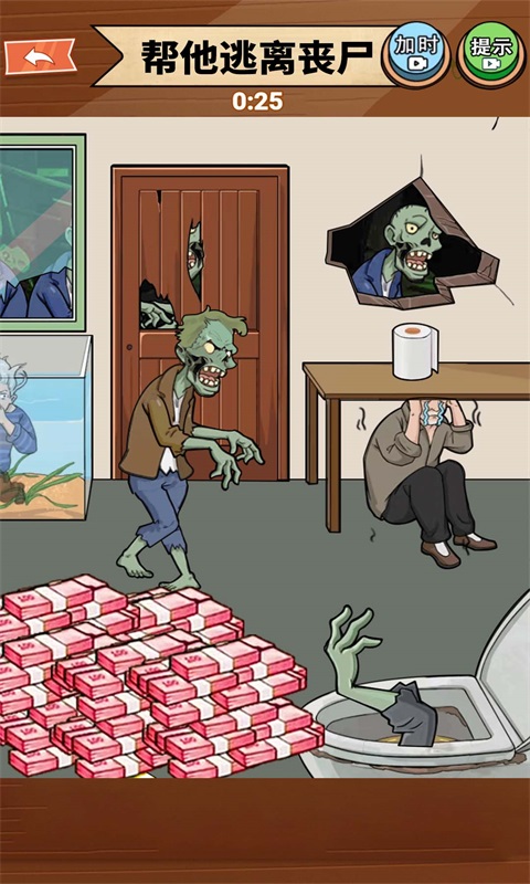 帮他逃离丧尸是一款创新的花钱解决问题的休闲益智游戏,帮他逃离丧尸里面有超多精彩的游戏玩法模式,大家可以体验更多的趣味闯关玩法,需要玩家们充分展现出自己的智慧,玩家们需要根据每一关的提示帮助我们的主角成功躲避僵尸的追踪,喜欢的快来下载吧。