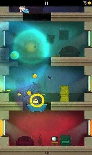 采用了划屏的简单操控方法,向上划动可以跳跃,向下划动可以进行破坏。你要一层层的往下深入,一路拾取更多的金币。这个有着多种造型的胖胖小偷,跑起来十分搞笑可爱,而各类道具更是让盗窃之旅变得更加有趣,当然巡逻警察、各种机关也得小心。