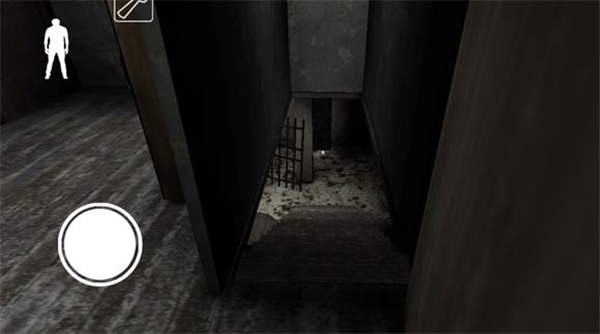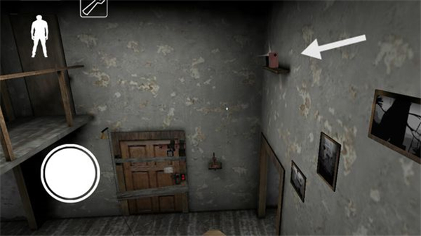 下楼梯后左边的地板上有一根黑线,从上面走过铃铛会响,需要注意。楼梯旁的柜子里可以躲,柜子对面有一个门,里面可能刷东西。柜子旁边有一个门通向地下室(由于画面较暗
