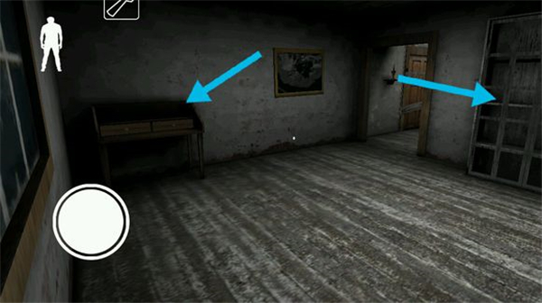 这是出生房,靠近床时点击右上角可以躲进床下,衣柜里也可以躲进去,床头柜左边的抽屉里有三行红字:Leave this house(离开这个房子),右边的抽屉里一般不会刷东西(反正楼主木有遇到过)。房间里只有花瓶和摆花瓶的桌子能被推倒,花瓶可以拿起扔在地上。在Day2(第二天)时出生房的门会被锁,所以需要扔花瓶或推倒桌子吸引奶奶过来,然后躲进床下或衣柜等奶奶离开。