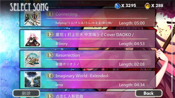 如图就是钢琴真实演奏的界面了,大家可以看到这里的歌曲还是蛮多的,比起故事模式来说的话。我们可以任意选择一首歌曲来玩,当然后面有锁的歌曲我们要解锁以后才能玩。