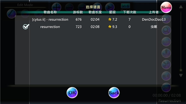 搜索结果出来后,选择你想要玩的谱面,并点击OK,游戏会提示你读取完毕,这时这个谱面已经成功的导入了你的游戏。