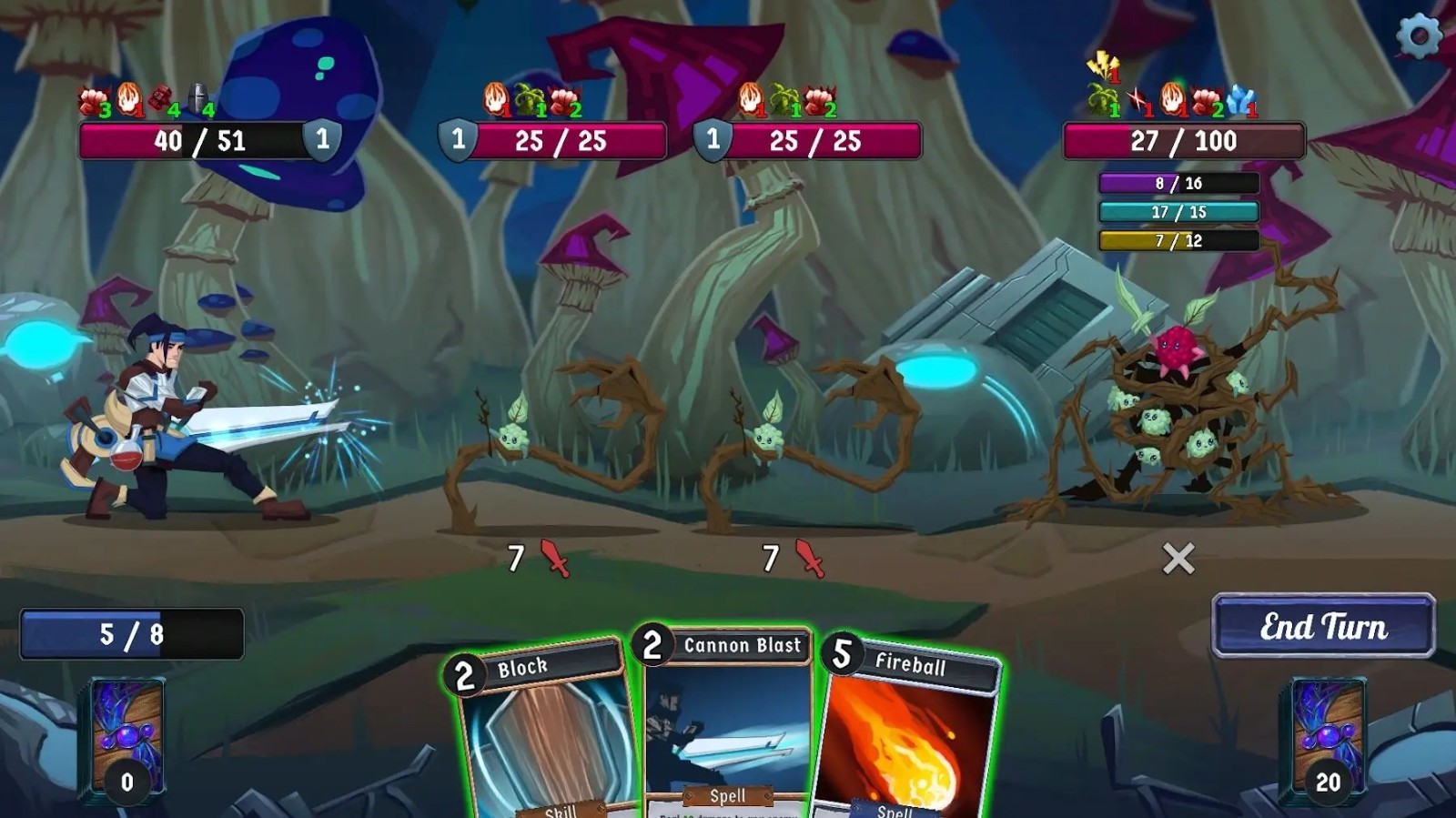 每场战斗都意味着新的挑战和机遇。你会谨慎行事、侧重防守,还是铤而走险、出奇制胜?通过奥术、冰霜和震击等特殊状态栏,以及各种增益与减益,你的每一项决定都会影响战局。通过抽卡改进卡组构筑,成为真正的策略大师。