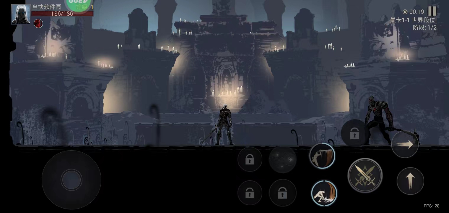 然后就可以开始游戏了,左边的按钮控制角色的走向,右边则是技能;