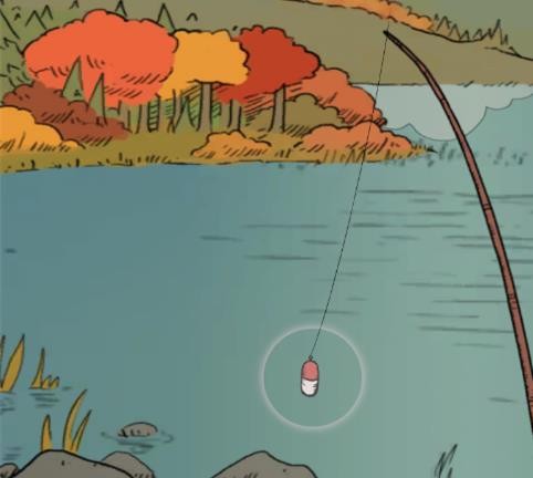 然后点击界面右上角的湖泊,在湖上我们可以看到一个钓鱼的鱼钩和浮标,点击它就可以开始钓鱼了。