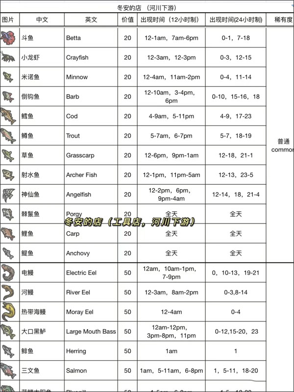 小镇公告板会有高价鱼种,需要在不同的时间和地点才能钓到(发到下一篇笔记了)。