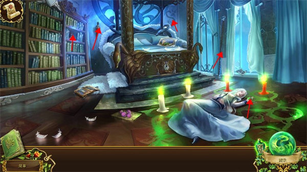 点击门口来到客厅,首先用放大镜为皇后查看一下,看到她眼睛和手都不太正常。