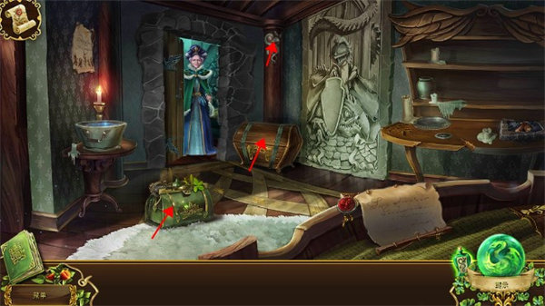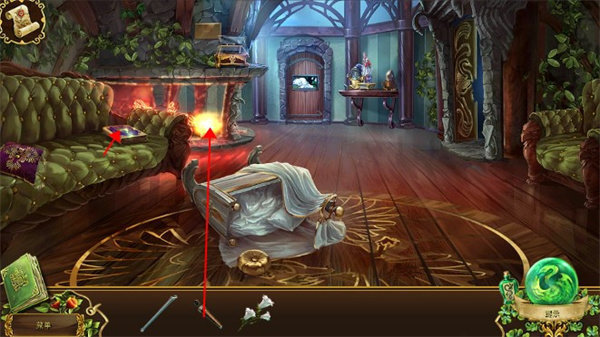 开始会有一段动画,看完我们可以得知故事剧情,皇后无法说话,但是不知道是得了什么病,需要检查,接着我们来到了客房,在房间里,首先我们可以在地上拿到一个草药行李箱,角落的柱子上我们可以得到一个医师符咒,整个游戏总共有31个医师符咒,算是隐藏物品吧,不点也没什么影响的。