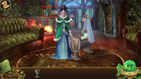 拿着冷静剂回到客厅,皇后的继母坐在沙发上,我们点击皇后的卧室,会有一段剧情,之后门被锁住了,皇后的继母显然受到了惊吓,我们把冷静剂给她。