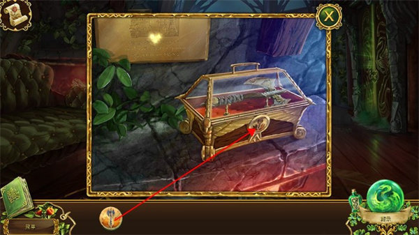 回到皇后的房间,点击书架,将太阳石放入凹槽中,进入一个机关。按要求操作就能打开暗门。
