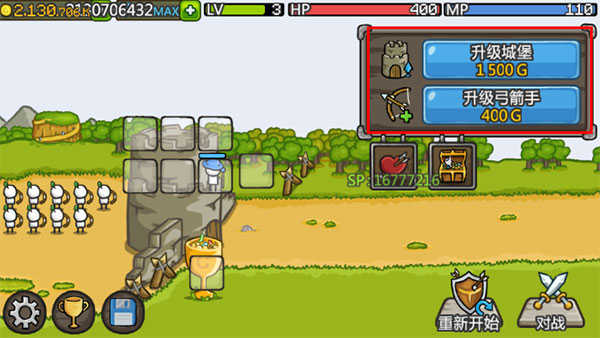 通过不断的升级城堡、训练士兵、建造塔楼就可以轻松通关了。