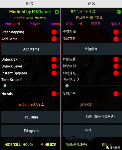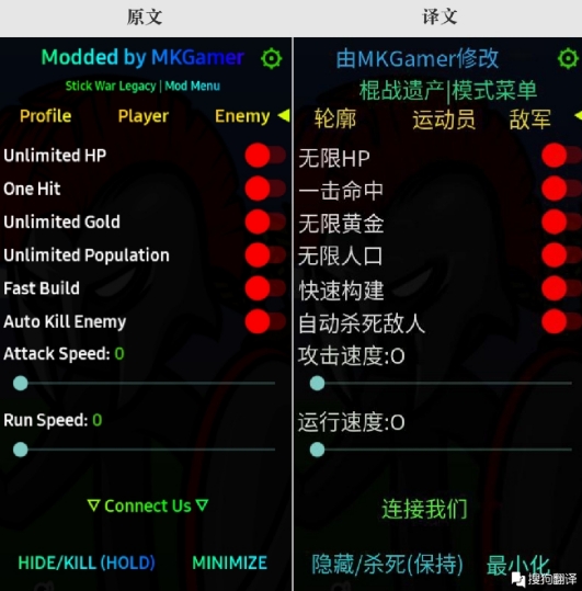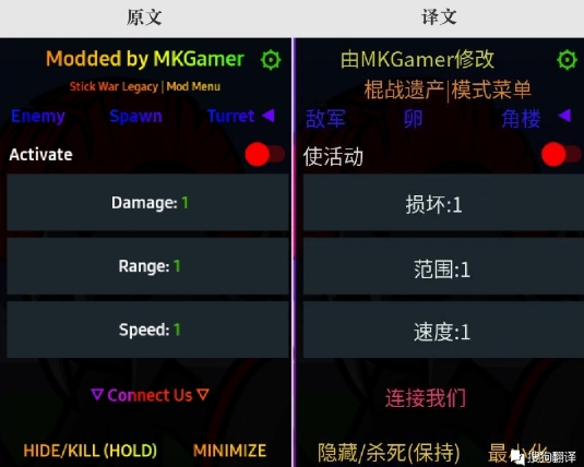 火柴人战争遗产MK魔改版菜单中文翻译图如下