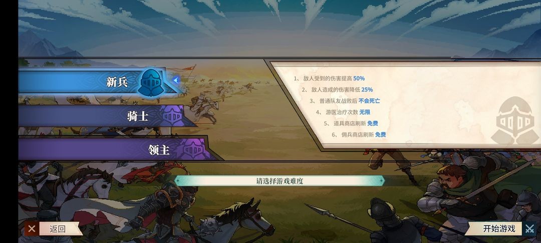 新手我推荐【新兵】模式,把卡牌解锁的差不多在继续开启【骑士】【领主】等难度,首先把玩法机制玩个一周目玩个明白