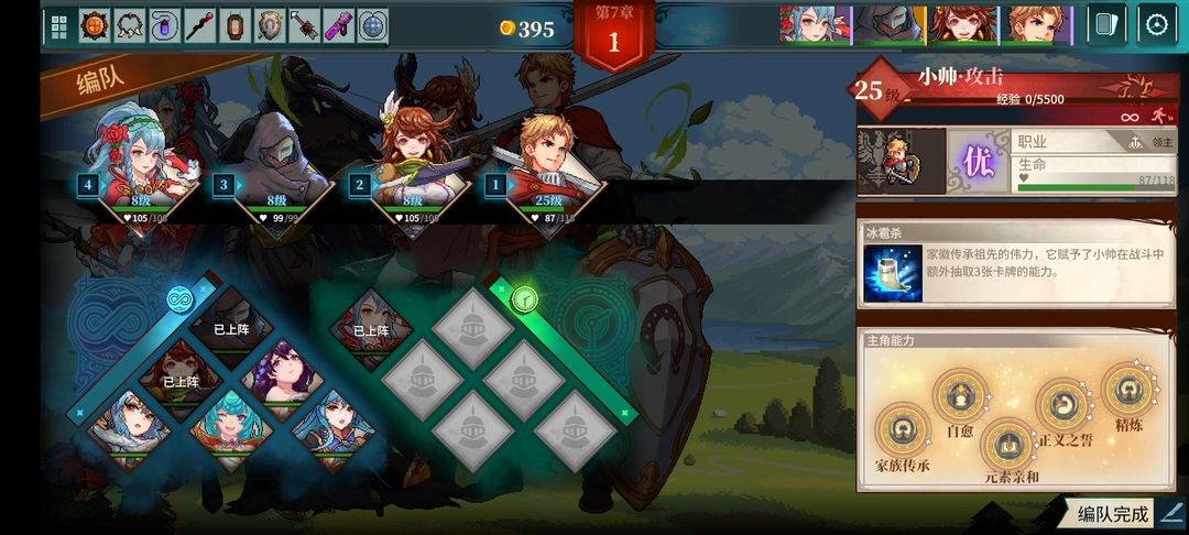 首先,天赋优先点经济,不过大家都玩到领主了天赋应该都点的差不多了,所以问题不大,前期开局先用剧情给的大叔,小美,这个阶段的卡牌选择如果不是特别适合燃烧队的还是选金币,圣遗物选择护盾回复类的,因为前期暂时没地方回血,并且领主级难度回血次数只有7次,这里推荐银盾吊坠,对战中大叔不死的情况下尽量把护盾给主角,毕竟大叔第二章自动离队,到了第二章,这时候我们身上大概有350金币左右,可以在营地小搜一下招募火精灵,大家运气不好不想花太多钱的话可以选择搜之前存档,通过sl大法来提速。