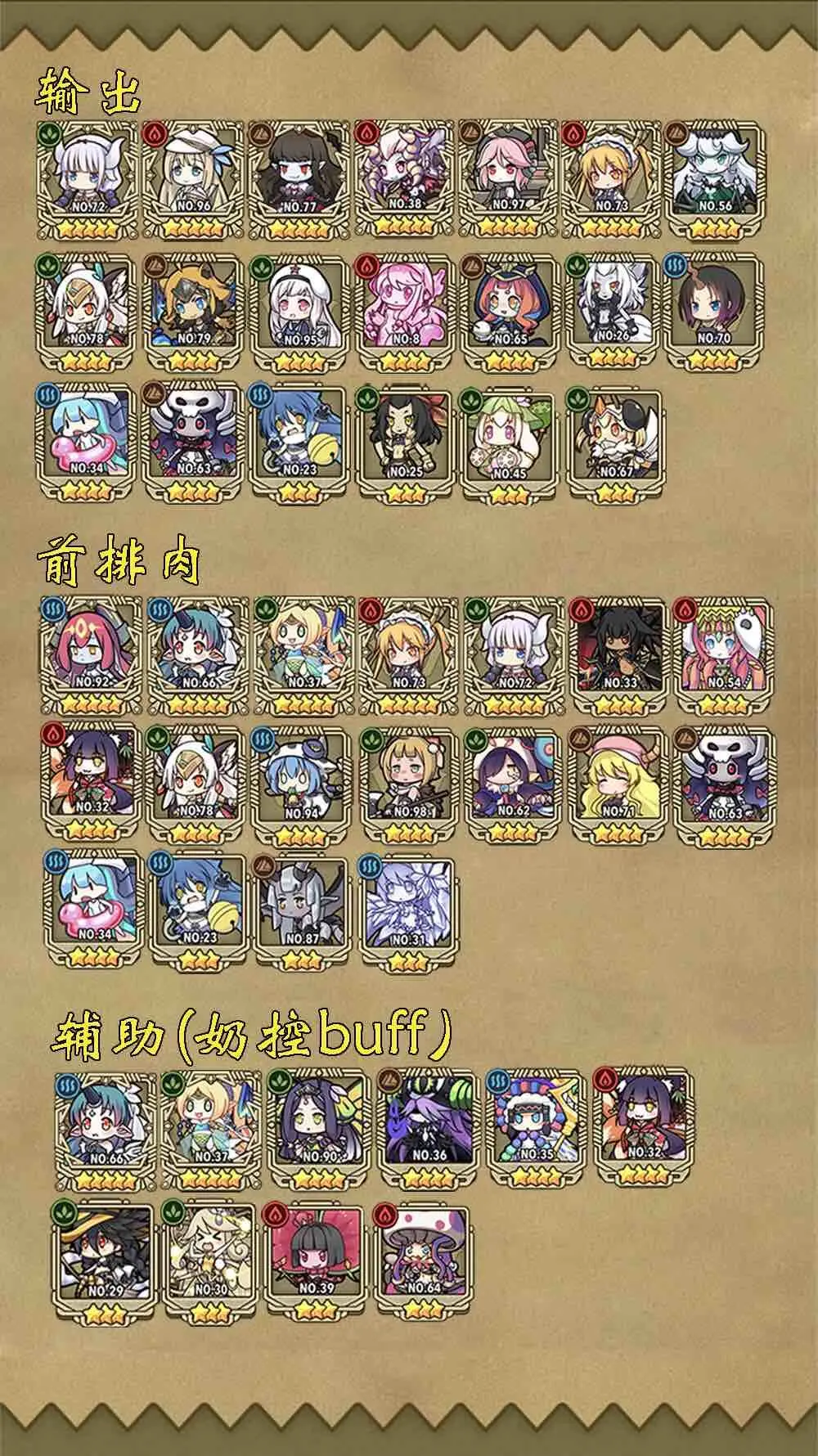 魔物优先级,或叫魔物职业强度:输出>肉>辅助(奶>控>增益buff)