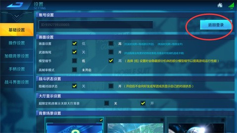 进入设置项后,我们在基本设置选项中找到返回登录按钮。