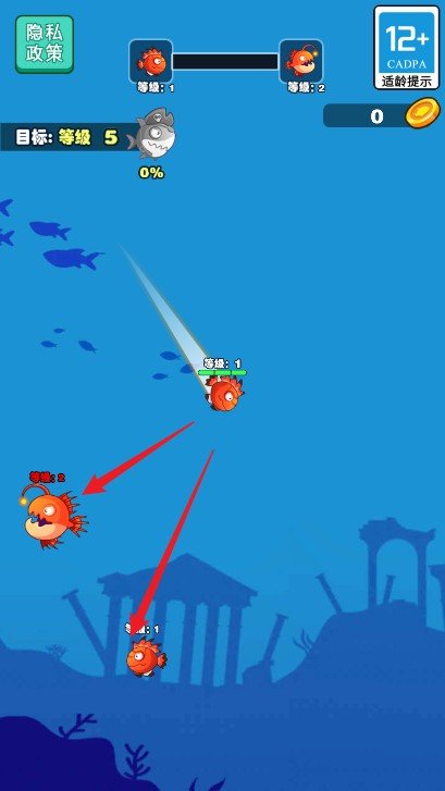 游戏内玩家还需要注意要灵活的躲避等级比自己高的鱼类,不然会被对方吸收血条挑战失败。