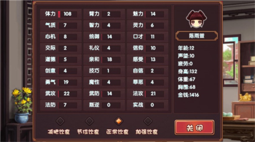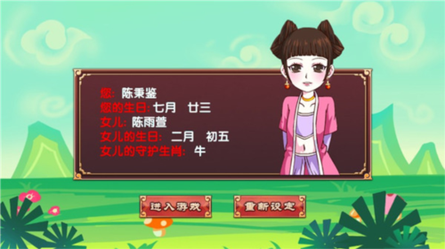 点击左上方女儿头像可以查看女儿的属性;