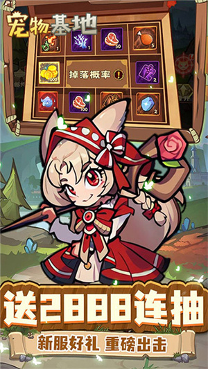 宠物基地是策略打怪游戏,通过策略完成敌人,多种模式玩法满足玩家需要,可以招募角色一起战斗,探索世界,新服上线送2888连抽,还有全新服装,支持离线操作,超级流畅!