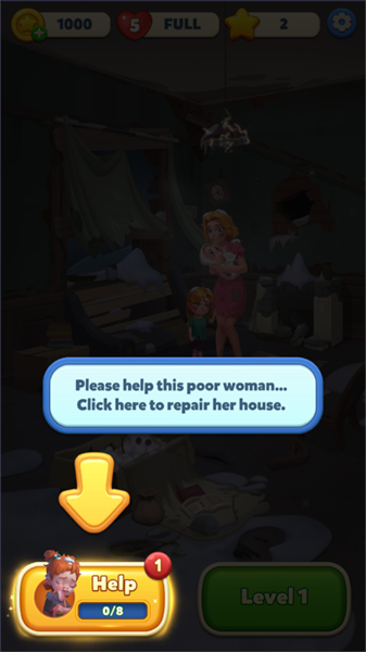 在进入游戏后会有相应的指引,通过点击图标来进行消除帮助画面中的角色;